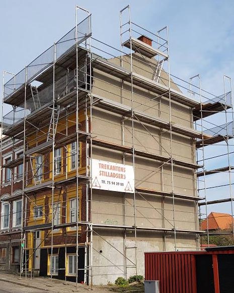 Hos Trekantens Stilladser A/S kan du få professionel hjælp til facadestillads i hele området omkring Kolding, Odense, Fredericia og Vejle.