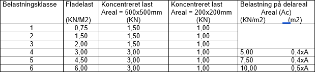 Klasse 1, 2 Let facadestillads – anvendes normalt kun til inspektion. Klasse 3 Let facadestillads – anvendes til inspektion og arbejder, hvor der kun oplagres materialer til brug for det aktuelle arbejde. Klasse 4, 5 Svært stålstillads – anvendes til murer-, puds,- og betonarbejder. Klasse 6 Svært stålstillads – anvendes hvor der kræves oplagret større og tungere materialemængder.